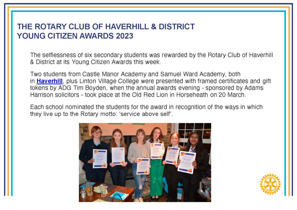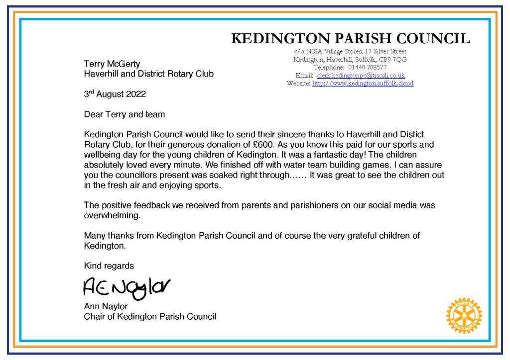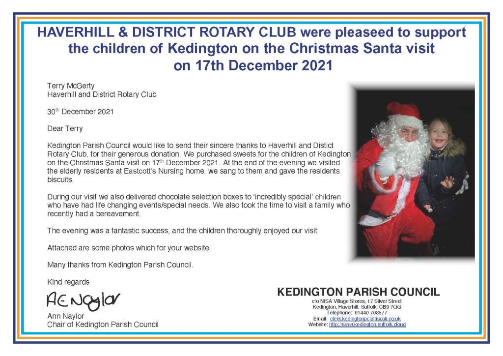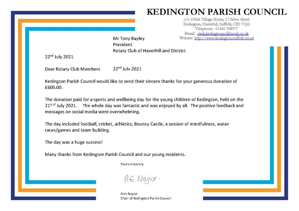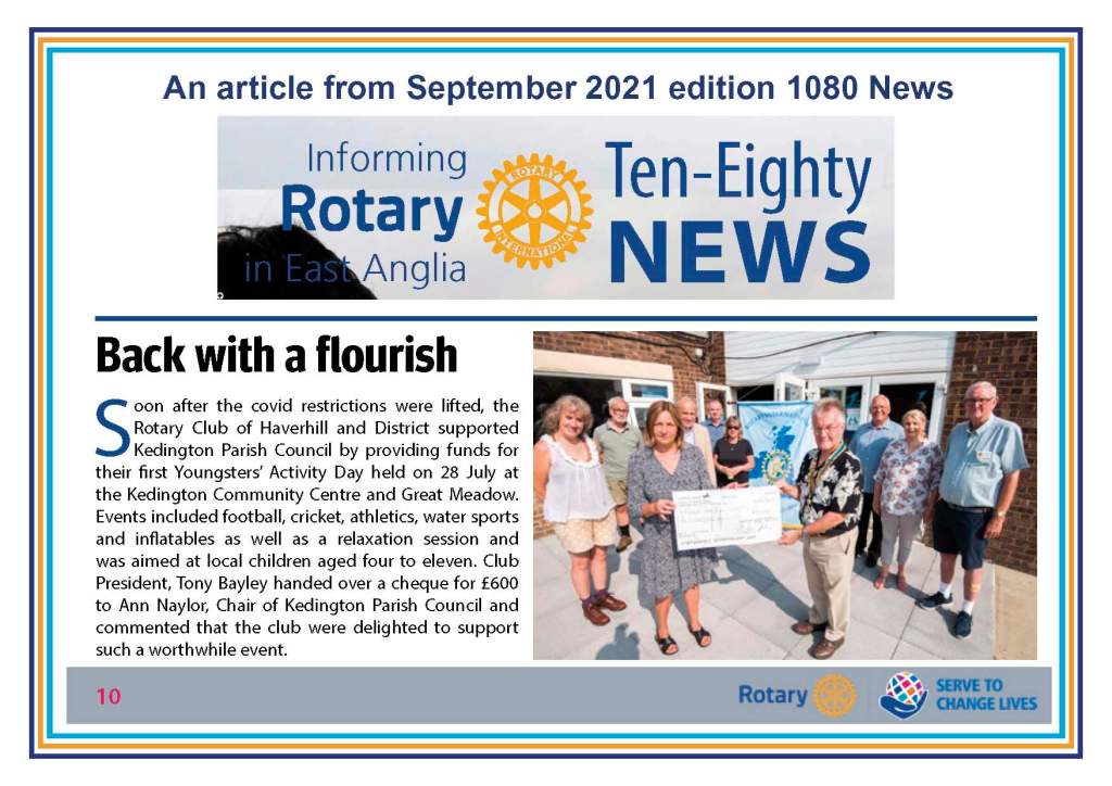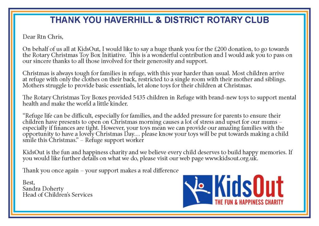 Haverhill also received the winners cheque for £220 which will be used to partly fund taking 40 kids to see the local Panto