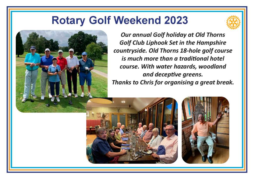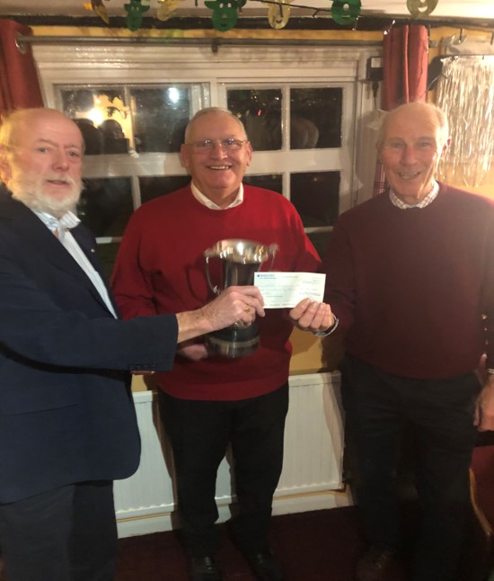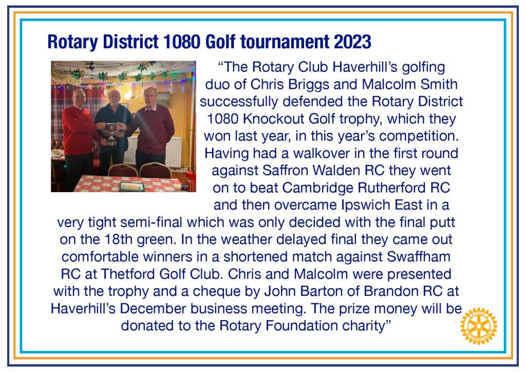 Chris Briggs and Malcom Smith being presented with the Rotary 1080 Knockout Golf trophy after winning the final against Kings Lynn Priory Rotary Club played at Thetford Golf Club on 12th October 2022.